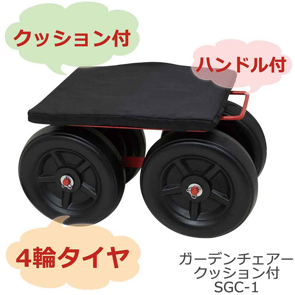 座布団がついて座りごごち抜群です。 タイヤ付き作業椅子。 畑・ガーデニングなどでの座り作業用です。 座りごごちのよい座布団付きです。 座ったまま移動が出来て作業が楽々出来ます。 持ち運びに便利なハンドル付きです。 ●サイズ:230×400×240mm(クッション含)。 ●重量:2500g。 ●耐荷重:90kg以内。 ●ハンドル付。
