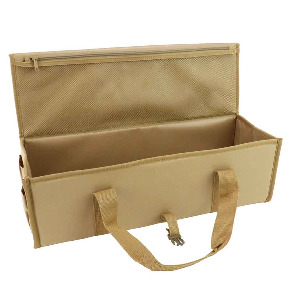 パカット開いて取り出しやすいBOX型ケースです。 工具、アウトドアギアの収納・持運び。 使わない時はコンパクトにたためます。 内側にはメッシュポケット付きです。 ●カラー:コヨーテ。 ●サイズ:LL。