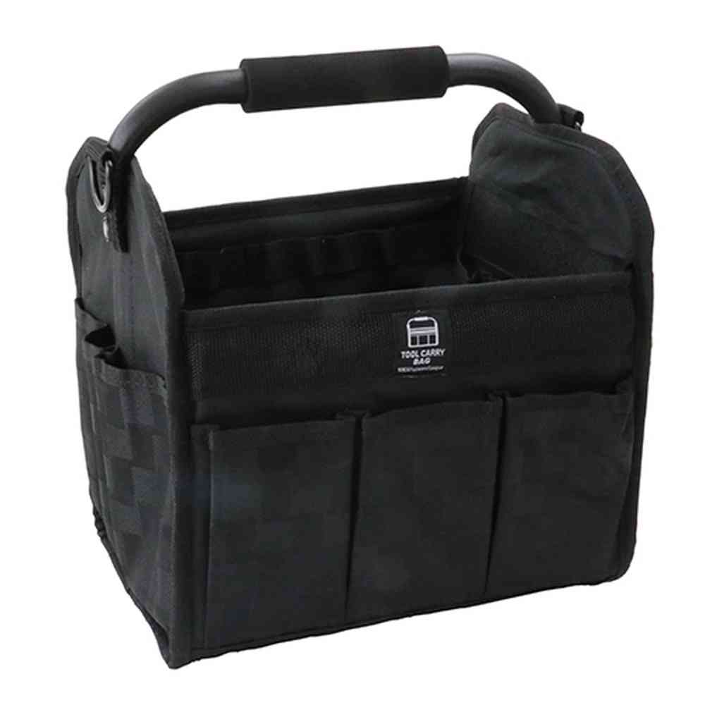 道具・工具の持ち運びに便利なツールキャリーバックです。 道具・工具の収納。 コンパクトサイズで持ち運びラクラクです。 ●色:ブラック。 ●サイズ:S。