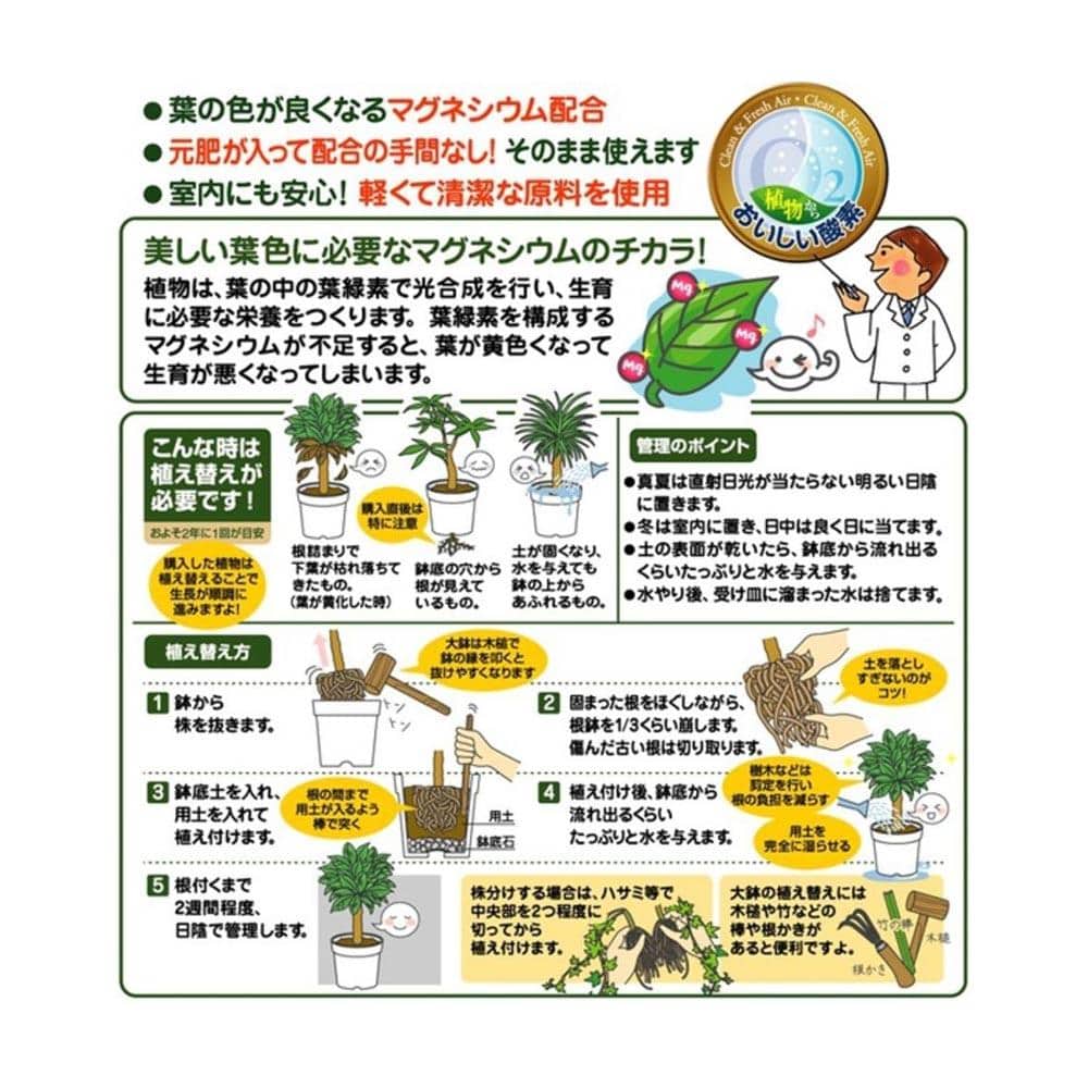葉の色が良くなるマグネシウム配合。室内でも安心、軽くて清潔な配合。