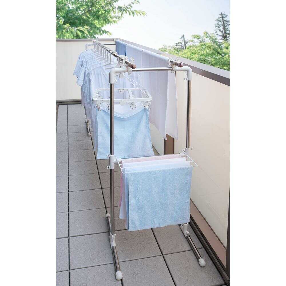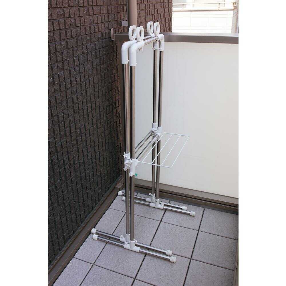 ベランダに最適なコンパクト設計で外から洗濯物が見えにくい。 日光があたりやすい。 使わないときは脚部をたたんでコンパクトに収納できます。