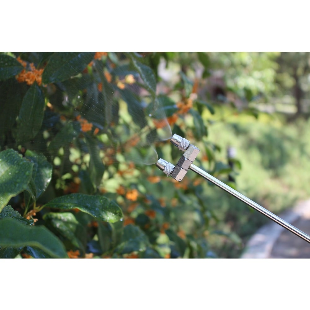 ●二頭口で広範囲を散布できます。●先端のノズルを回すことによって霧の拡がり・向きを自由に変えられるので、高い所や広範囲に散布できます。●過剰な圧力を、外部に自動的に放出する安全弁装置付です。●庭木や植物の病・害虫の消毒剤や除草剤などに最適。●田畑の・液体の肥料や薬剤の散布などにも最適です。●殺虫・殺菌・除草を目的とした薬剤散布に●ルコール消毒(無水エタノールは80%以下に薄めたもの)にも使えます。●除草剤と殺虫剤の併用はしないでください。●容量(L):5●ノズル:ニ頭口●ノズル長(mm):400~950●ホース長さ(m):1.5●幅(mm):180●奥行(mm):180●高さ(mm):390●最高圧力(MPa):0.25●蓄圧式噴霧器●容量:5L 質量1220g