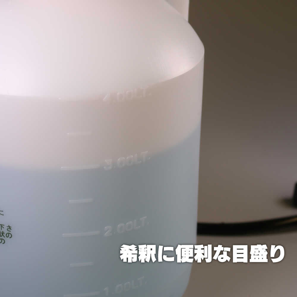 ●本体:ポリプロピレン(PP)●タンク:ポリエチレン(PE)●ホース:ポリ塩化ビニル(PVC)●ノズル:真鍮