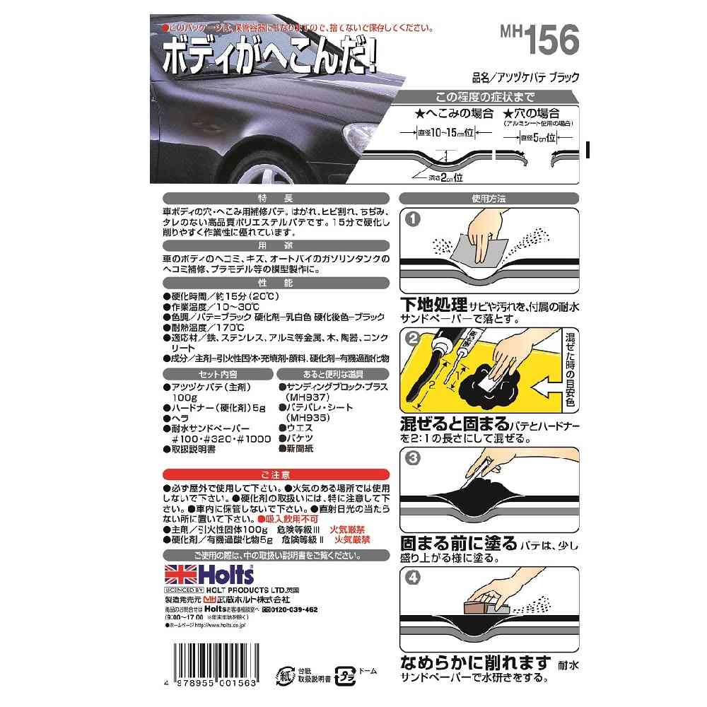 ホルツ、補修、車、ボディ、穴、へこみ、パテ、はがれ、ヒビ割れ、ちぢみ、タレ、ポリエステル、ブラック