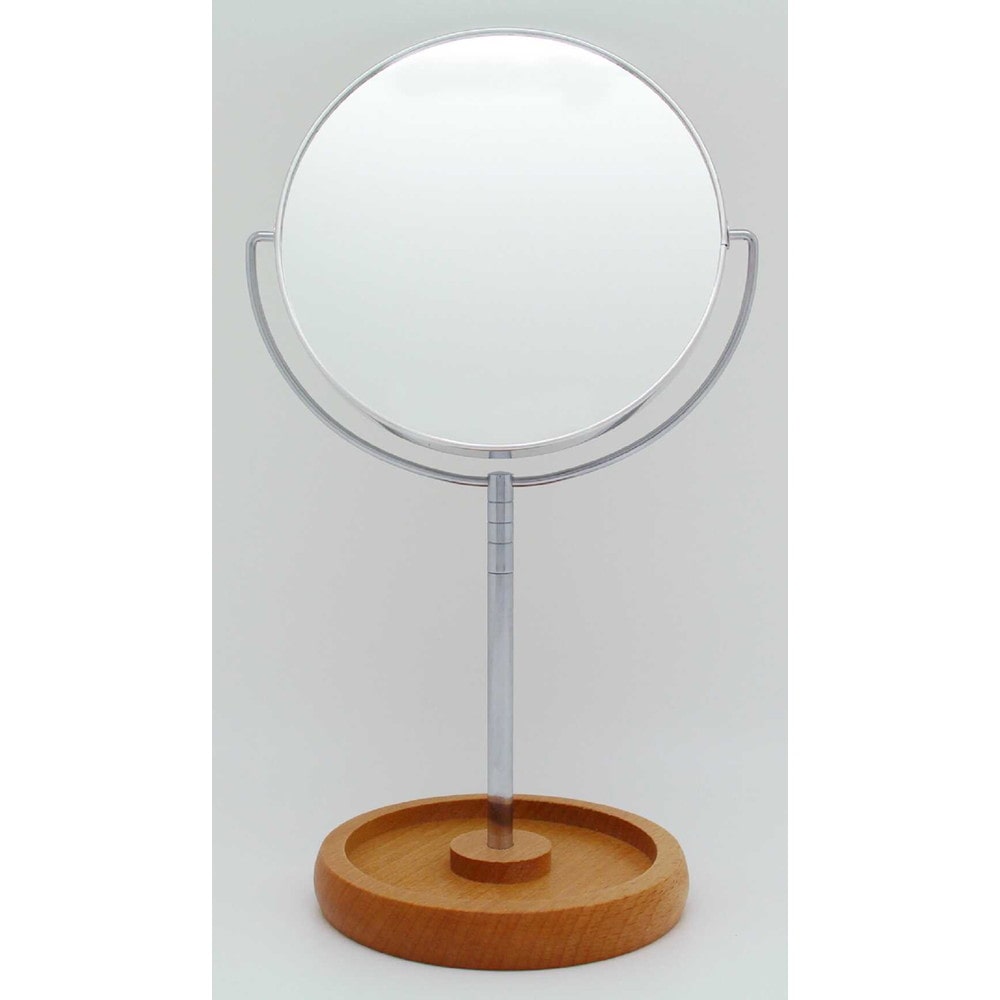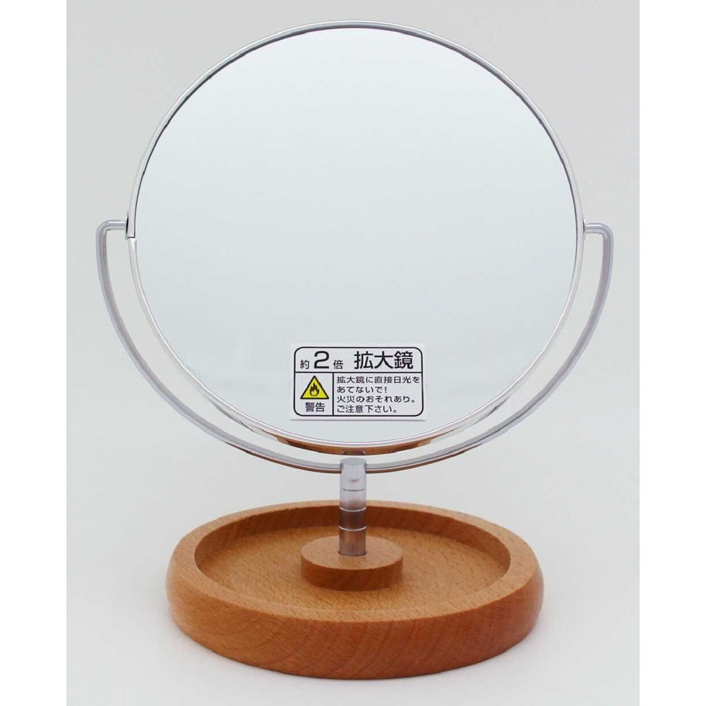 鏡 ミラー 卓上鏡 スタンドミラー 両面鏡 化粧鏡 メイク 2倍 拡大鏡 アルミフレーム 天然木 木製台 シルバー 日本製