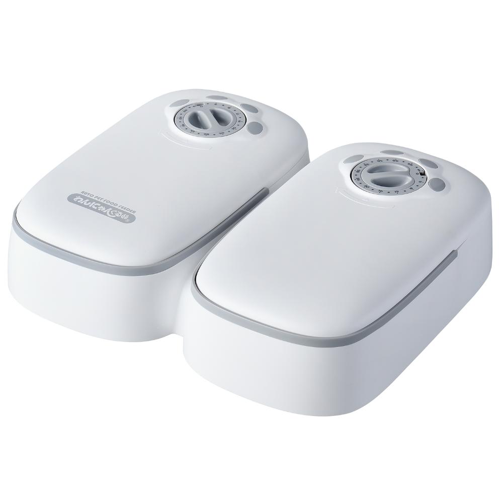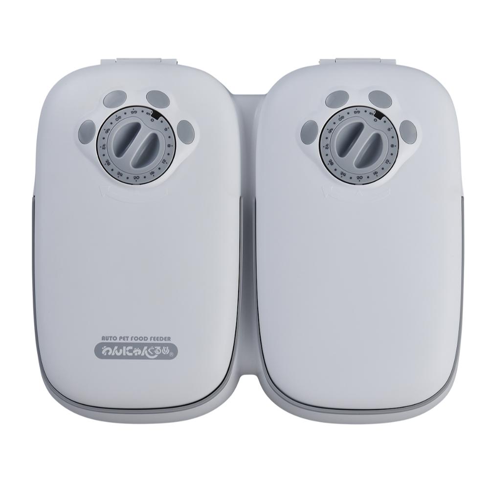 ・小型犬・猫、室内用 ・2食分セットで外出も安心 ・2つのタイマーはそれぞれ48時間までセット可能 ・ドライ、ウェットどちらのフードにも対応 ・1食分で一般的なドライフード約150gセット可能 ・トレーは取り外せて、水洗いOK ・設置場所を選ばない電池式
