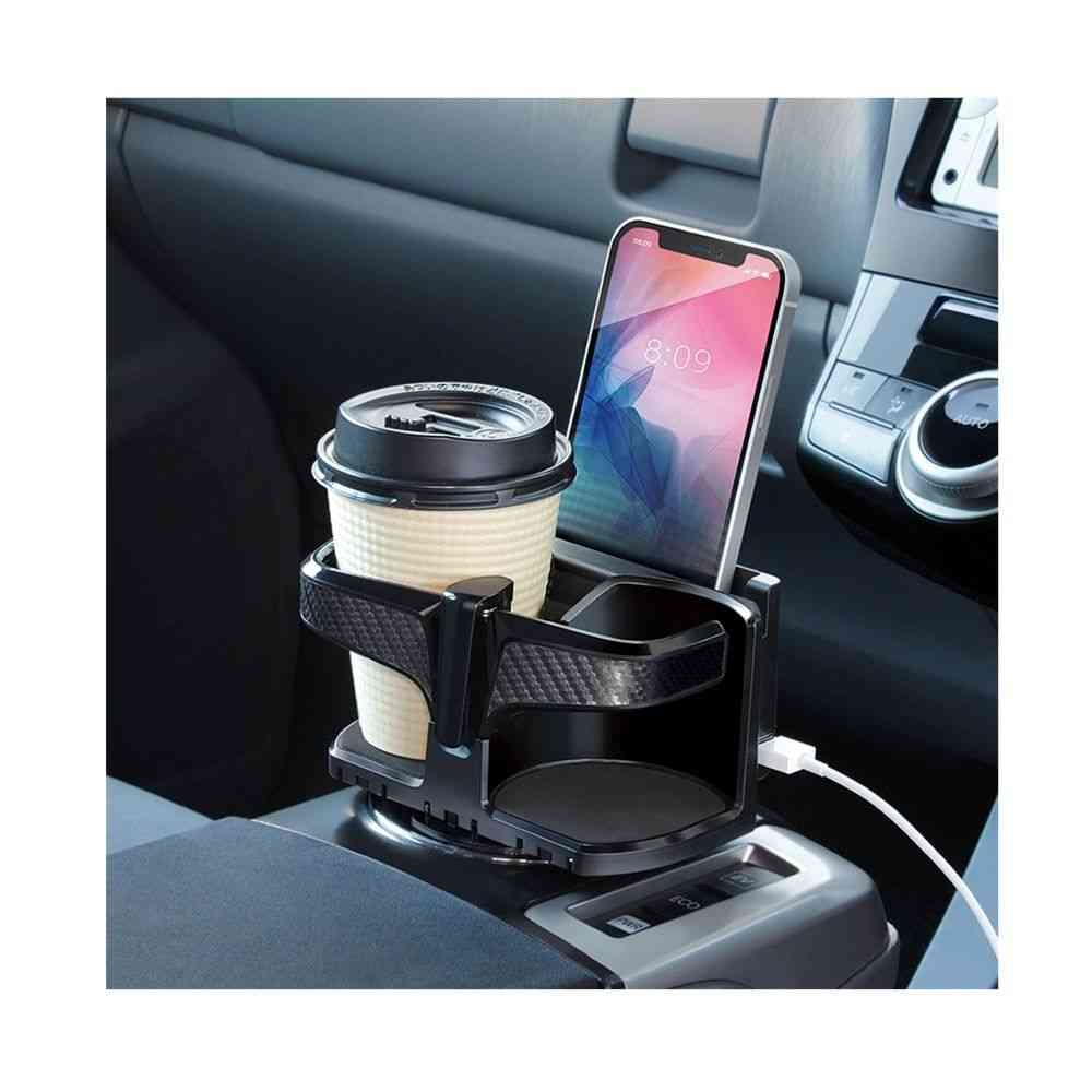 ヤック、USB、コンパクト、ダブル、ドリンク、ホルダー、プルオープン、小物収納、スマホス、マートフォン、車PF393