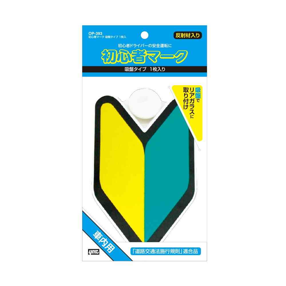 ●初心者ドライバーの安全運転に。 ●車内用吸盤タイプ。 ●道路交通法施行規則適合品。 ●反射材入り。