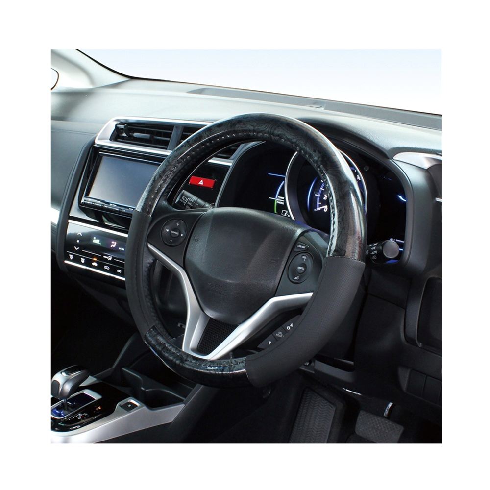 ●今まで装着しにくかったハンドルカバーが楽々装着可能になった新形状ゴムリング[かぽっと]採用。 ●落ち着いた雰囲気の黒木目柄とブラックパンチングレザーの組合せ。 ●においが少なく装着しやすい素材[エラストマー]を採用。 ●高品質ビニールレザー(合成皮革)使用。 ●適合サイズ:ハンドル直径36.5~37.9cm