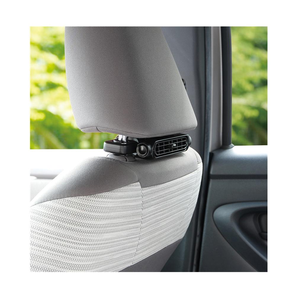●工具なしでヘッドレストのポールに簡単に取り付けできるスポット扇風機です。 ●3段階の風量調節が可能です。(OFFも可能) ●エンジンOFF時の風量(OFF・弱・中・強)を記憶することができるメモリー機能付きです。 ●USB Type-Aポートに挿し込むだけで使用できます。 ●コード長:約1.4m ●ポール径φ10~15mmのヘッドレストポールに取り付け可能です。