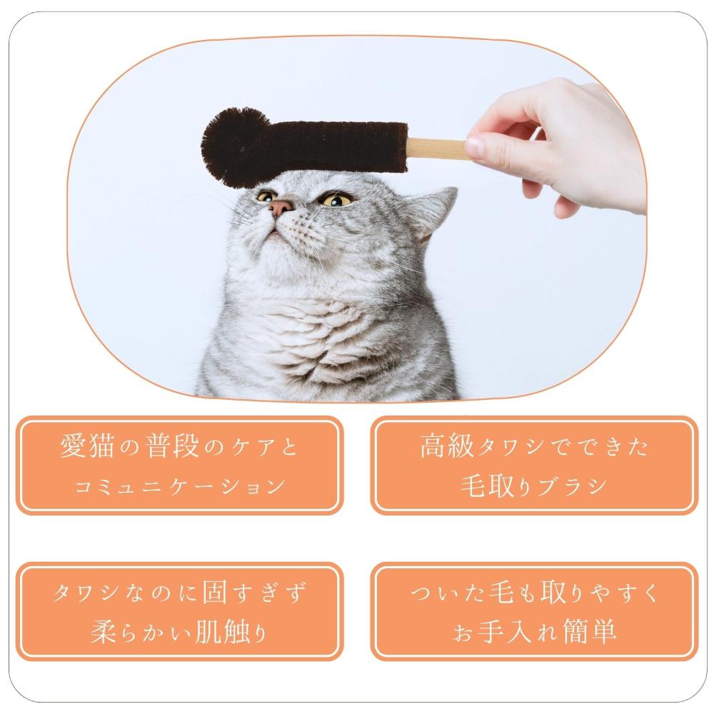 ・本商品は猫用のマッサージ&毛取りブラシです。用途以外には使用しないでください。 ・本商品は天然素材を使用し、また全て手作りのため、形やサイズ、色や木目などが異なる場合があります。 ・天然素材を使用しているため、使い始めは繊維や粉が出ることがあります。 ・強く擦り付けると、ペットの怪我や商品の傷み、変形の原因になります。 ・柄の部分を長時間水に漬けておくと劣化の原因になります。 ・水分がかかった場合は日陰でしっかり乾燥させてください。カビ等の原因になります。