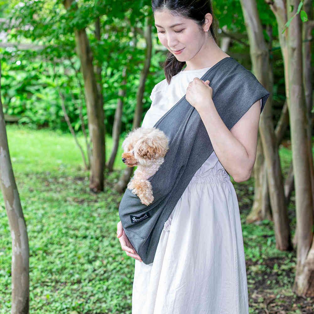 ペットを優しく包み込みストレッチ性のある素材を用いた国産ソフトスリング。 飛び出し防止リード付き。 コンパクトに折りたためて持ち運びも便利。伝統工芸品を扱う国内工場で職人がひとつひとつ手作りで編み上げたきめ細やかな縫製です。 女性の標準身長160cm前後の方が使用するサイズです。 ●耐荷重:4kg