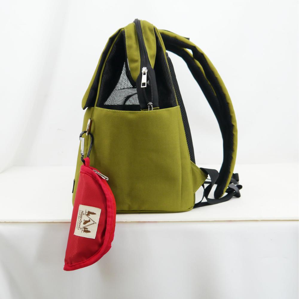 ペットボトルリサイクル生地を使用した環境にやさしいペット用バッグ。猫ちゃんにも使用できます。外出に便利なファスナーポケットや保冷剤やカイロが入れられる内ポケット付きで収納に困りません。両側面にはペットボトルやおもちゃが入れられるポケット付き。ゆったりくつろげるサイズで底板も2重なので安定感抜群。飛び出し防止リード、中から開けられないロックファスナー付きなので安心。メッシュ窓は目隠し付きです。 ●耐荷重:6kg ※耐荷重以内でもペットの体形によっては使用できない場合があります。