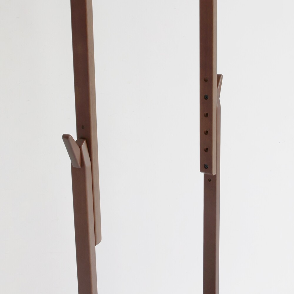 5段階の高さ調節ができるハンガーラック。 いちばん低い132cmからいちばん高い150cmの4.5cm間隔で調節可能。 幼児期の子どもから大人まで使うことができるロングライフデザインのアイテムです。