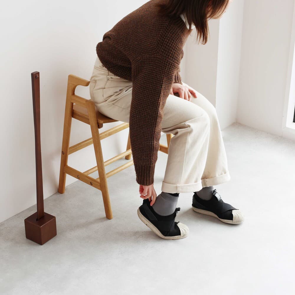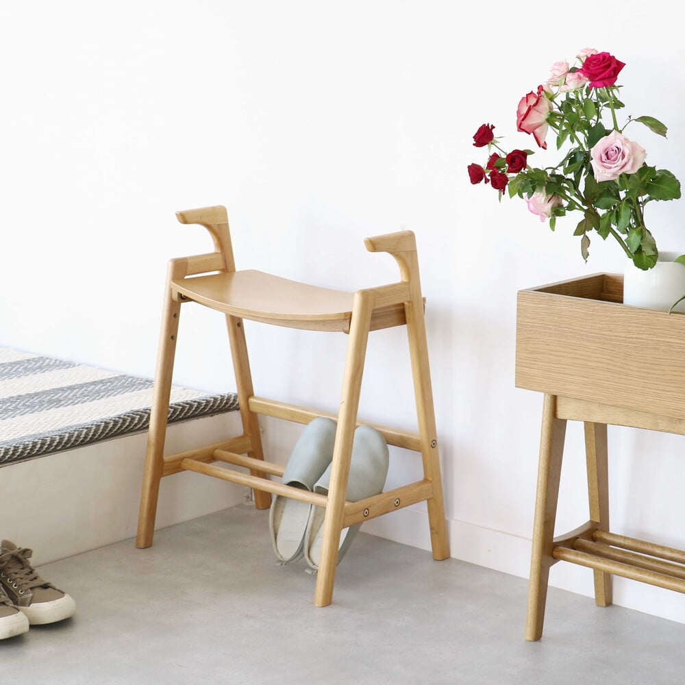 毎日のいってらっしゃいとおかえりの時に、 さりげなくサポートするやさしいアームベンチ。 手すりがあることで、毎日の動作がぐっと軽やかに。 そんなアームベンチで、安心と快適さをお届けします。 座面の高さは約4cm間隔で3段階に調整可能。 立ち上がりやすい高さに調整できロングブーツや長靴も楽にはけます。