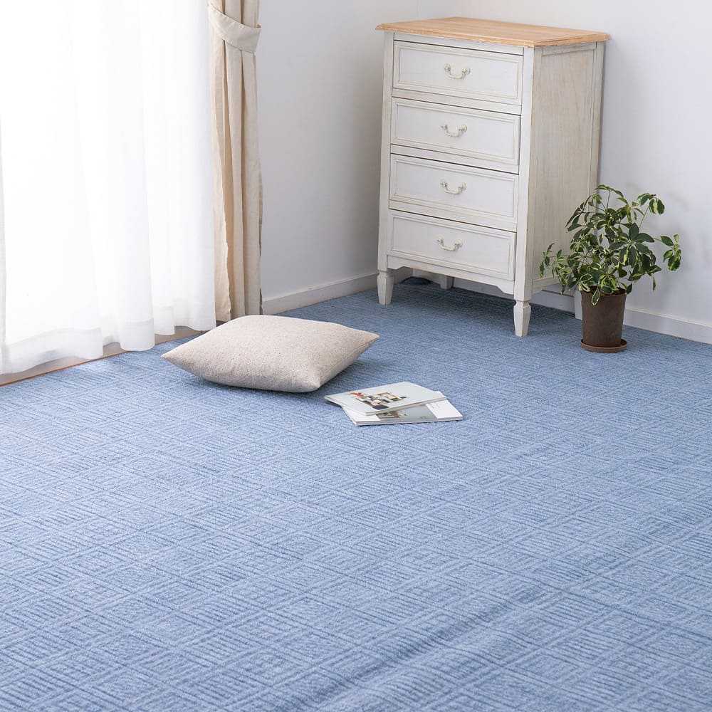 超軽量カーペット。一人暮らしでも持ち運び簡単。弾力があり復元性に優れていてへたりにくく、ふかふかとした肌触りが特徴。