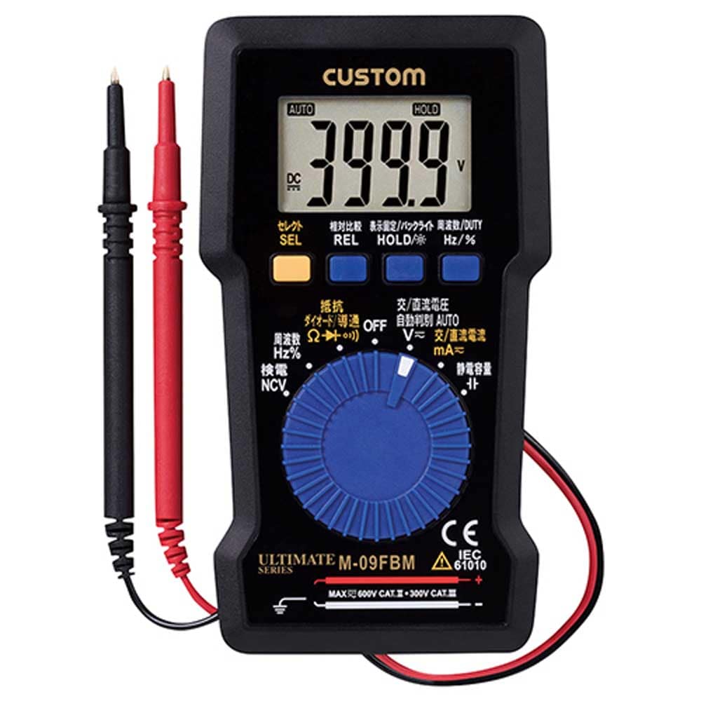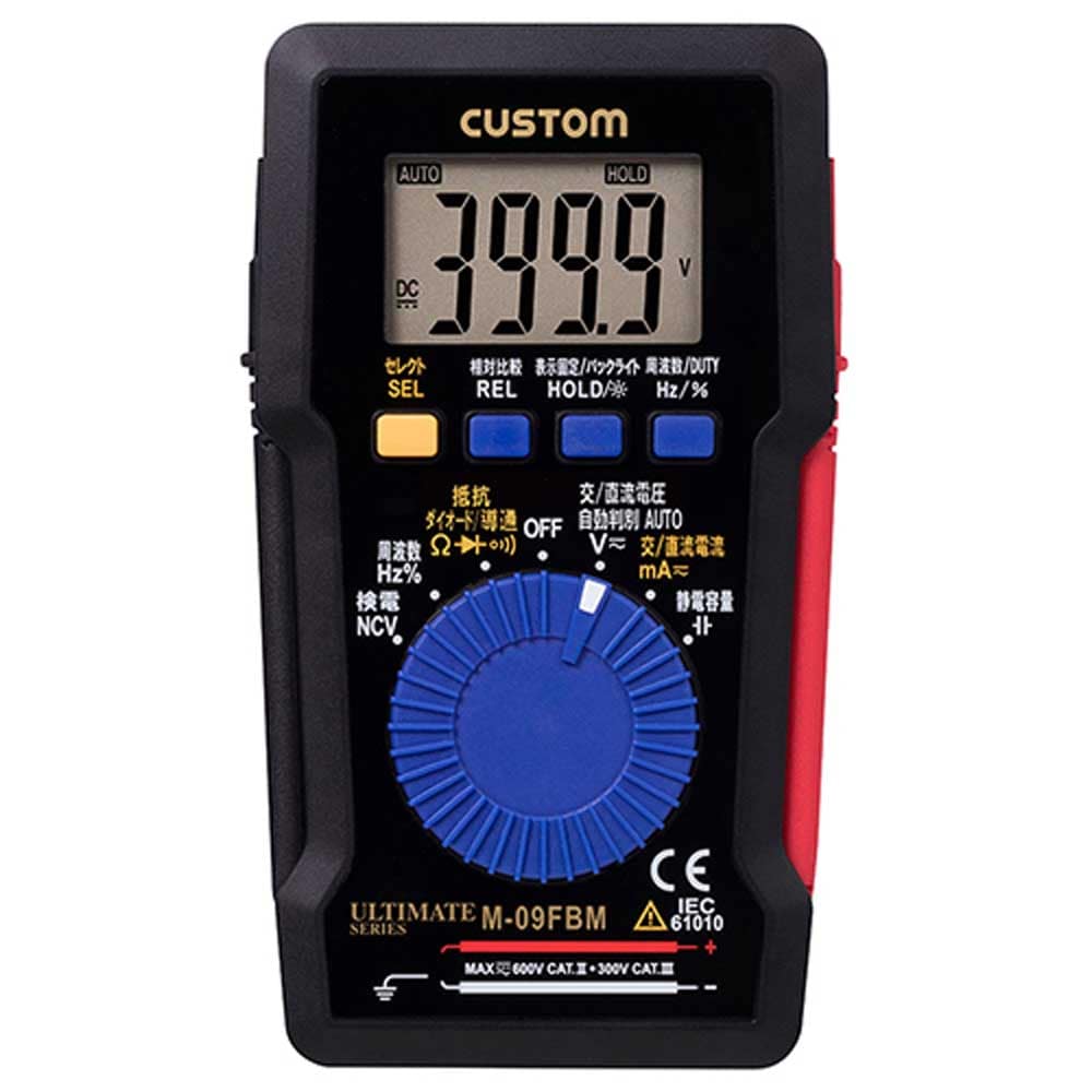 本体背面に磁石を内蔵しているので、配電盤などの金属面に貼り付けることができます。 機器などの電圧、抵抗測定。 薄型で多機能なデジタルマルチメータです。 AC、DC電圧はオートで誤操作の心配はございません。 測定機能は、直流/交流電圧、抵抗、ダイオードチェック、導通チェック、周波数、DUTY、コンデンサチェック、等の各機能を有しています。 ●動作原理:二重積分方式。 ●サンプリング:約3回/秒。 ●電源CR2032リチウム電池×1個・サイズ(約)W70×H127×D12.5mm・重量101g(電池含む)。 ●校正可・準拠規格IEC-61010-01_300V_CAT.III_600V_CAT.II。 ●レンジ/分解能:DCV(4V/0.001V・40V/0.01V・400V/0.1V・600V/1V)・ACV(4V/0.001V・40V/0.01V・400V/0.1V・600V/1V)。 ●レンジ/分解能:周波数(5Hz/0.001Hz・50Hz/0.01Hz・500Hz/0.1Hz・5kHz/0.001kHz・50kHz/0.01kHz・100kHz/0.1kHz)。