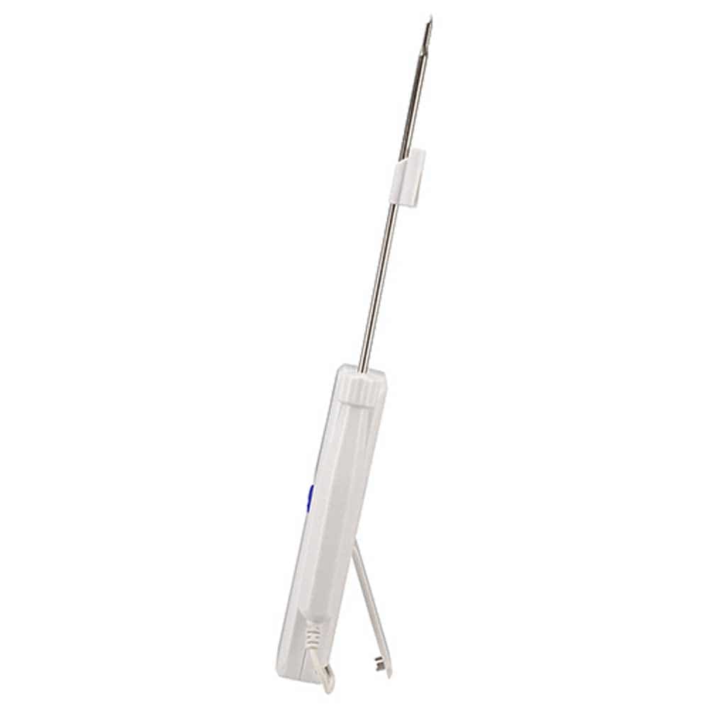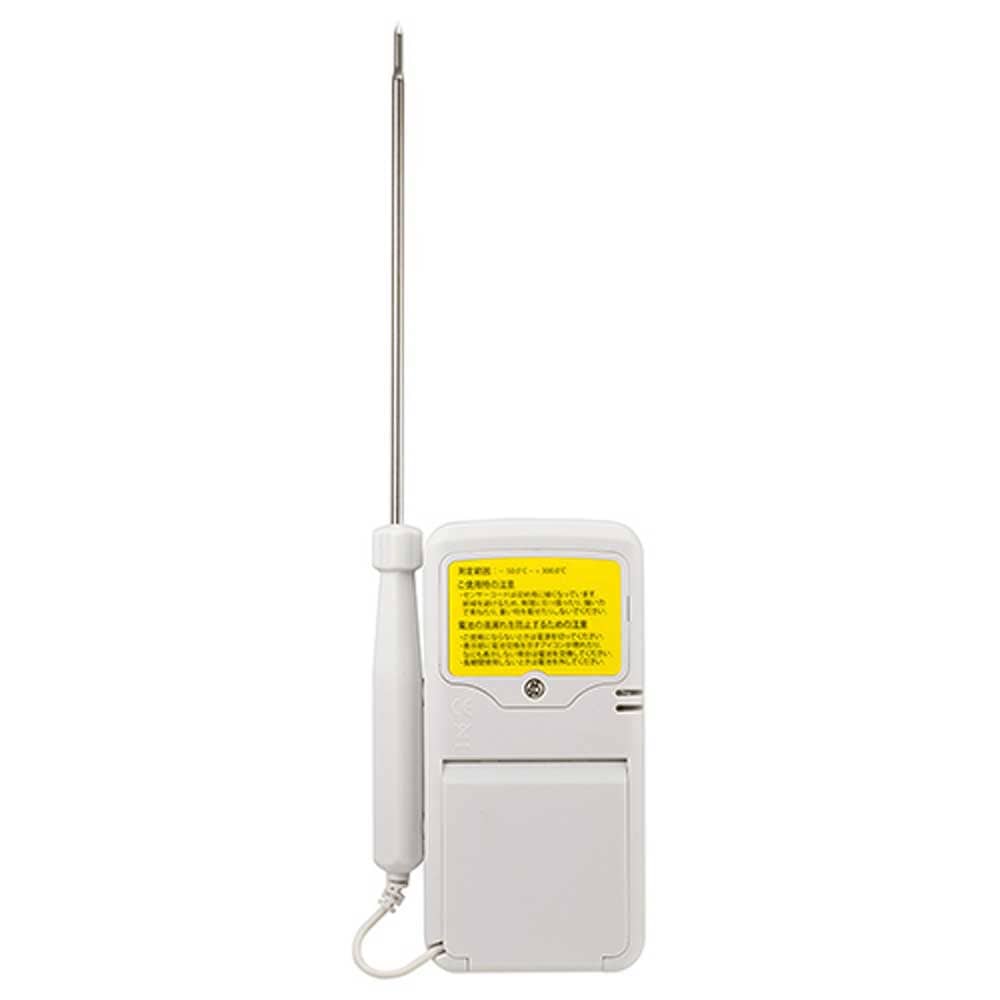 防水性に優れたIP65仕様です。 水分、油、土などの温度測定。 最高/最低温度表示機能、温度を固定できるデータホールド機能付きです。 設定した上限、下限値の温度を越えると電子音でお知らせするアラーム機能付きです。 プローブをマグネットで本体に固定できるので収納時に便利です。 ●センサータイプ:サーミスタ。 ●プローブ長:φ3.5mm×150mm、センサーコード:φ2.5mm×1000mm。 ●測定範囲:-50~+300度C。 ●使用温湿度:-10~50度C、90%RH以下(結露がないこと)。 ●保存温湿度:-10~50度C、90%RH以下(結露がないこと)。 ●電源:単4形乾電池×2本・電池寿命約400時間(アルカリ電池使用時)。 ●防水性:IP65準拠。 ●校正:可(ISO/IEC17025校正可)。 ●付属品:取扱い説明書・プローブキャップ。
