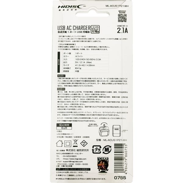 ●5V/2.1Aの出力に対応したシンプルなAC。 ●USB充電器。