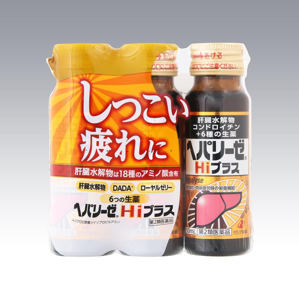 ・服用方法を守ってご使用下さい。 ・元気を出すには栄養剤の他に、バランスよい食事、睡眠も大切です。疲れたら休息をとり、1日3食きちんと食べるよう心がけましょう。 ・お使いになって何か気になる症状が出た場合は、使用を中止し、医師・薬剤師・登録販売者にご相談下さい。 ・使用前に、よく添付文書をお読みになってからご使用下さい。その際、ご不明な点がございましたら、薬剤師・登録販売者にご相談下さい。商品説明◆肝臓水解物 コンドロイチン+6種の生薬 ◆滋養強壮・肉体疲労時の栄養補給 ◆ヘパリーゼHiプラスは、肝臓水解物やジクロロ酢酸ジイソプロピルアミンなどの肝臓や胃腸のサポート成分とコンドロイチン硫酸エステルナトリウムに加え、肝臓に作用するクコシ、滋養強壮作用のあるトシシ、セイヨウサンザシ等を含め6つの生薬を配合したミニドリンク剤です。 残業や付き合いなどが多く、慢性的な疲れを抱えやすい現代人におすすめです。 飲みやすい味に仕上がっています。