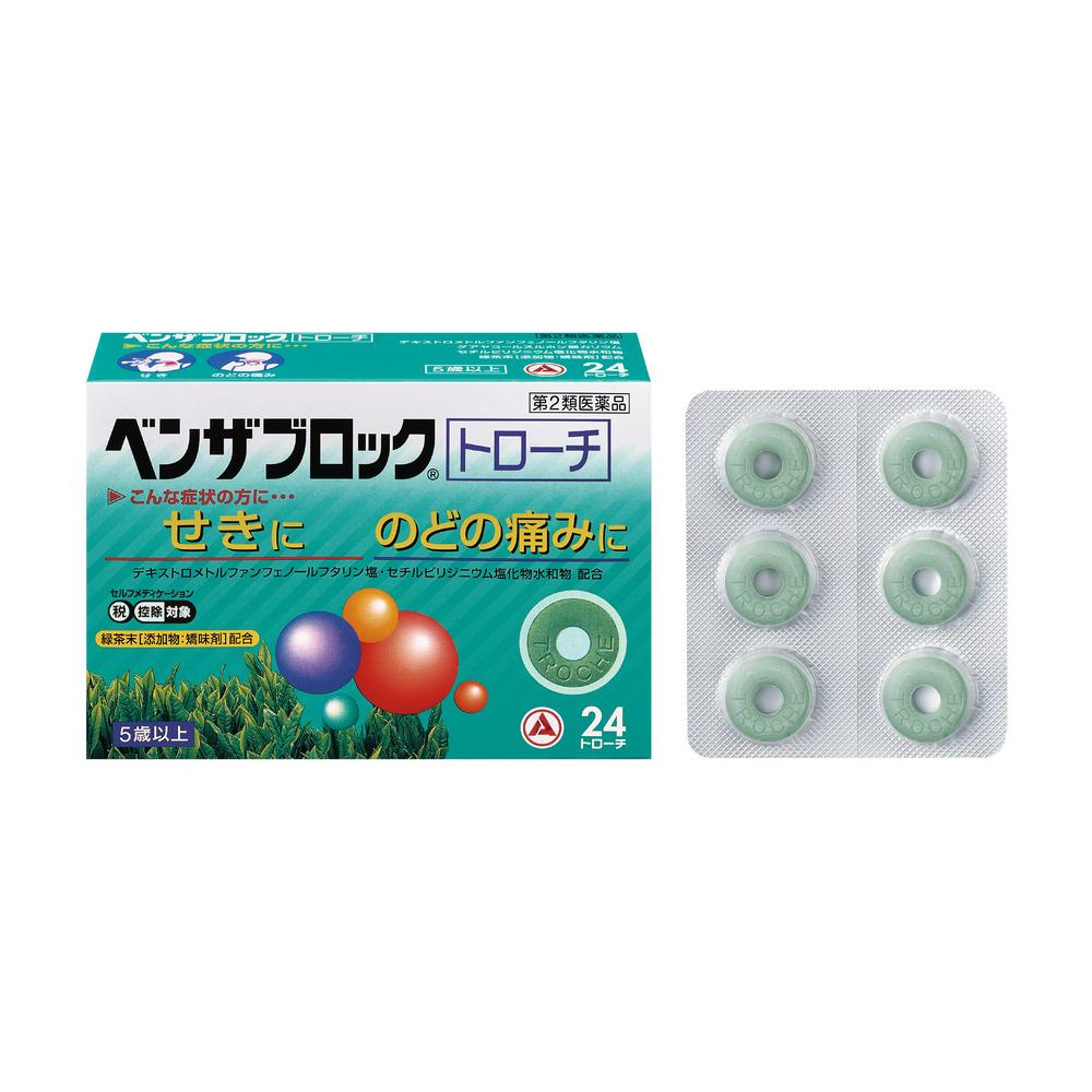 ・こちらは咳止めのトローチです。他の咳止めの飲み薬との併用は控えて下さい。 ・咳は体力を消耗するため、回復には休養も大切です。栄養価の高いものを食べ、ゆっくりお休みになって下さい。 ・服用後、乗物または機械類の運転操作をしないで下さい。(眠気等があらわれることがあります。) ・お使いになって何か気になる症状が出た場合や、5~6回使用しても症状の改善が見られない場合、使用を中止し、医師・薬剤師・登録販売者にご相談下さい ・使用前に、よく添付文書をお読みになってからご使用下さい。その際、ご不明な点がございましたら、薬剤師・登録販売者にご相談下さい。商品説明●口腔内殺菌成分・セチルピリジニウム塩化物水和物を配合したトローチ剤であり、のどの炎症によるのどのハレ・痛みを抑えます。 ●鎮咳成分・デキストロメトルファンフェノールフタリン塩が咳中枢にはたらいて、つらい咳を抑えます。 ●緑茶末(添加物:矯味剤)をはじめて配合した、緑色ドーナツ状のトローチ剤です。 ●5歳のお子様からご家族みんなで服用できます。