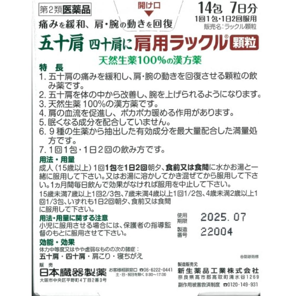 五十肩の痛みを緩和し、肩・腕の動きを回復させる顆粒の飲み薬です。