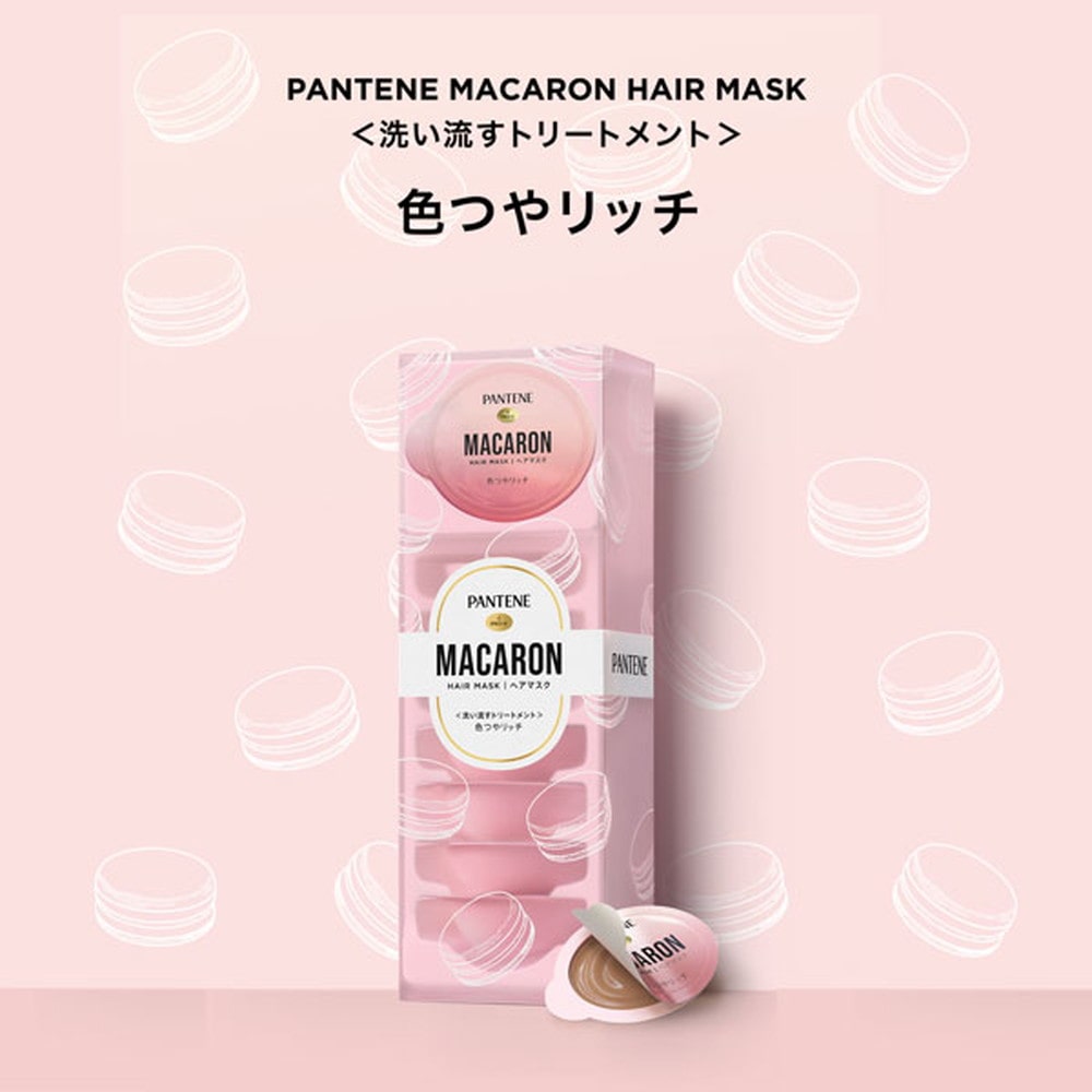 ●パンテーンマカロン ヘアマスク 色つやリッチ<洗い流すトリートメント> ●カラーした髪のダメージ、パサつき、くすみ*をケアして、色落ちから髪を守る特別な処方。 ●ずっと続く、色つや髪へ。 ●あなたの髪を甘やかす、リッチなトリートメントタイムを。 ●お試し用 1個入り *髪の表面が乱れて整っていない状態。