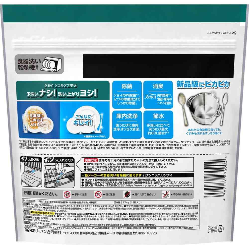 P&G、ピーアンドジー、ジョイ、JOY、じょい、PRO、PRO洗浄、プロ洗浄、プロ、食器用洗剤、食洗、食器洗い、食器、洗剤、お皿洗い、皿洗い、キッチン洗剤、キッチン、台所洗剤、台所、食洗機、自動食洗器、食洗機用洗剤、ジェルタブ、ジェルタブクリスタル、入れるだけ