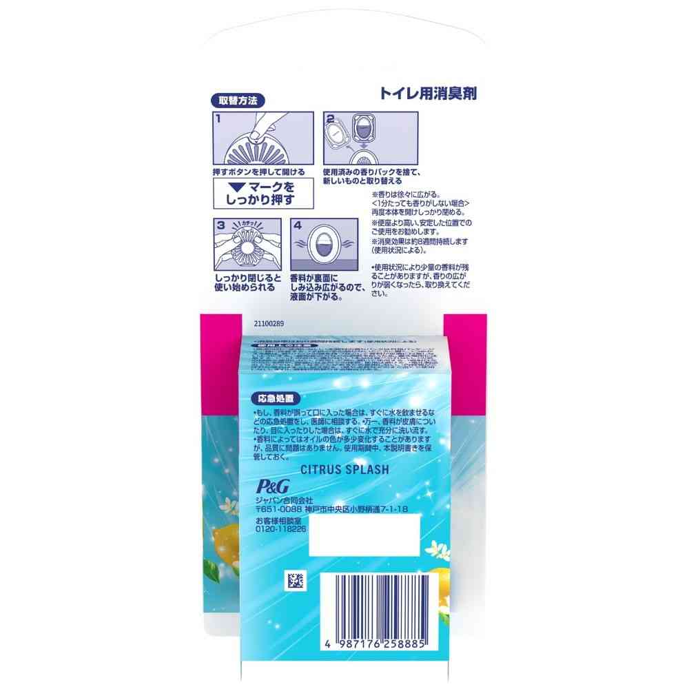 P&G、P&Gジャパン、P&Gジャパン合同会社、ピーアンドジー、ファブリーズ、トイレ用、除菌、消臭、防臭、抗菌、脱臭、芳香剤、つけかえ、付替え、付け替え、詰替え、詰め替え