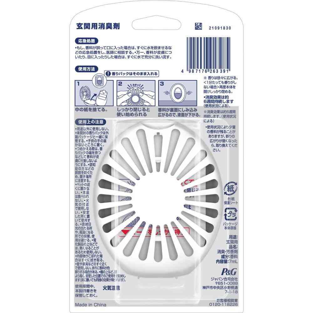 P&G、ピーアンドジー、ファブリーズ、玄関用、除菌、消臭、防臭、抗菌、脱臭、芳香剤、本体