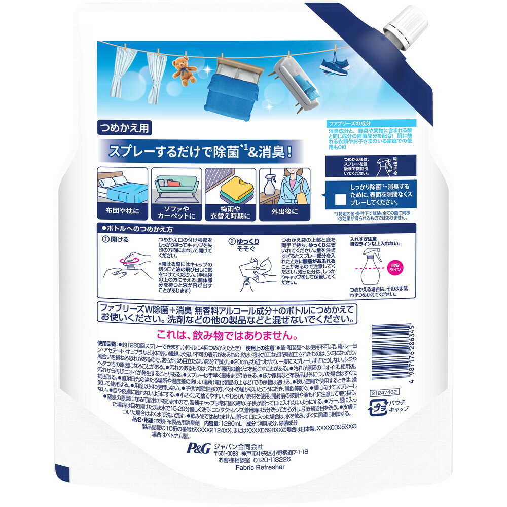 1本で消臭・除菌・ウイルス除去・シワ取り! タバコや体臭、焼き肉などの食べ物のニオイを消臭して、お洗濯したようにスッキリさわやかに。 ソファやマットなど頻繁に洗えない布製品にぴったり。 アルコール成分入り+無香料 詰め替え用