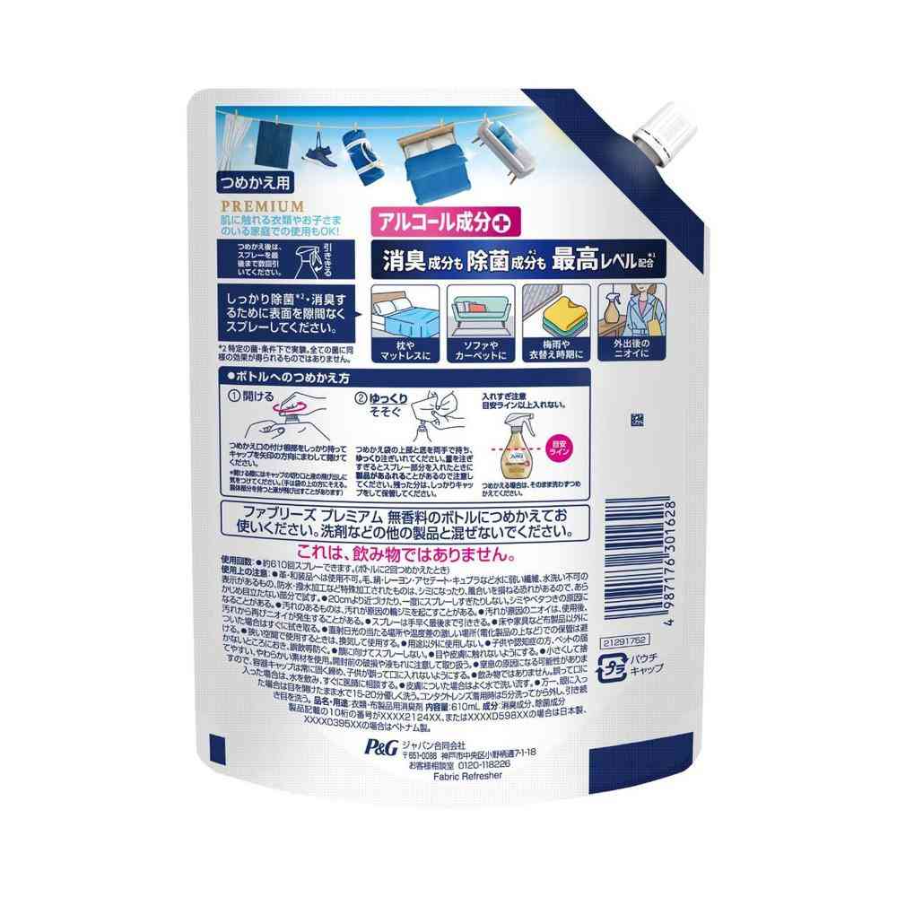 P&G、P&Gジャパン、P&Gジャパン合同会社、ピーアンドジー、ファブリーズ、お部屋用、衣類、コート、制服、ソファ、カーペット、家具、布用、除菌、消臭、防臭、抗菌、脱臭、芳香剤、スプレー、ミスト、スプレー、プレミアム、詰替、詰替え、詰め替え、レフィル、入替、中身