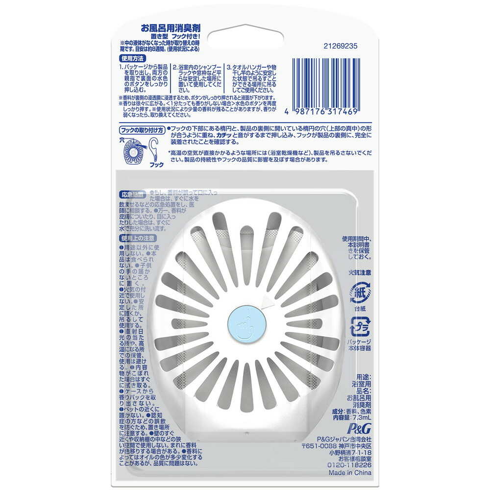ボタンを押してお風呂に置くだけ、掛けるだけでお風呂を消臭してカビ臭を防ぐ「ファブリーズお風呂用消臭剤」! 排水溝のニオイまで防ぎます。 約8週間効果が持続します(使用状況による)。