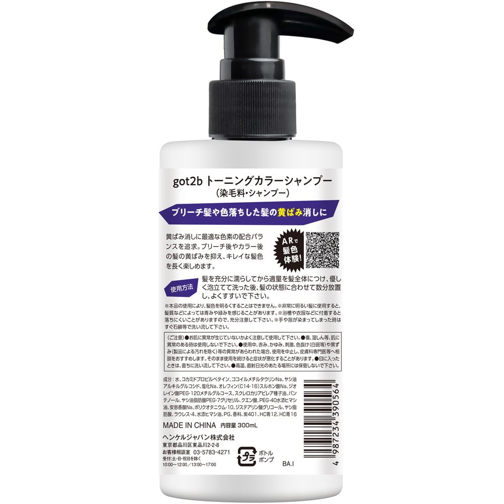 【自分でつくる!#デザインカラー】 ブリーチ後の黄ばみ消しに。 特濃*ムラシャン。 *弊社R&D開発品において 黄ばみ消しに最適な色素のバランスを追求。 ブリーチ後やカラー後の髪の黄ばみを抑え、キレイな髪色を長く楽しめます。 got2b。トーニングカラーシャンプー。