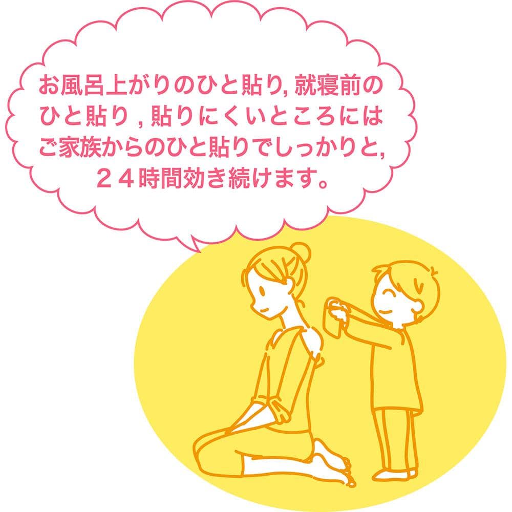 ・鎮痛剤等の内服との併用はお勧めできませんので、ご注意下さい。また、他にも飲み合わせの悪いお薬がございますので、鎮痛剤に限らず何かお薬を服用中の方は薬剤師等にご相談の上、ご使用下さい。 ・腫れや痛みが落ち着くまでは、無理に動かしたり、揉んだり、お風呂に長く入ったりしないように注意しましょう。 ・汗をかいている場合は、汗を拭き取ってから使用しましょう。また、連続して貼る場合は、同じ部位を避け、少しずらして貼ると良いでしょう。 ・使用してもよくならなかったり、腫れや痛みがだんだん強くなってく商品説明セルフメディケーション税制対象 【1】ジクロフェナクナトリウムを2%配合。 【2】1日1回で24時間効き続けます。 【3】微香性で、人前でも気になりません。 【4】ライナーが3ピース(中央剥離方式)ですので、はりやすい。