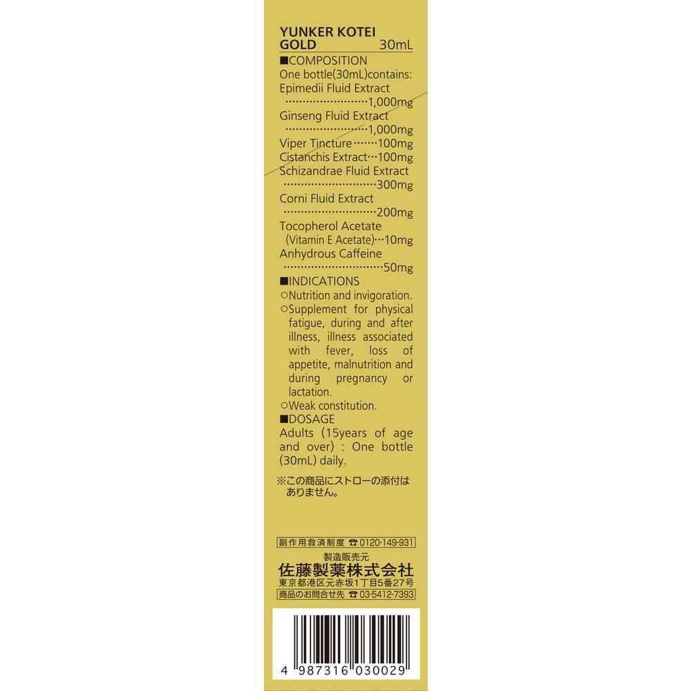 ・服用方法を守ってご使用下さい。 ・元気を出すには栄養剤の他に、バランスよい食事、睡眠も大切です。疲れたら休息をとり、1日3食きちんと食べるよう心がけましょう。 ・お使いになって何か気になる症状が出た場合は、使用を中止し、医師・薬剤師・登録販売者にご相談下さい。 ・使用前に、よく添付文書をお読みになってからご使用下さい。その際、ご不明な点がございましたら、薬剤師・登録販売者にご相談下さい。商品説明ユンケル黄帝ゴールドは、イカリソウ、ニンジン、ゴミシ、サンシュユ、ニクジュヨウ、反鼻の6種類の生薬にビタミンを配合したドリンクです。 滋養強壮、肉体疲労・病中病後・食欲不振時の栄養補給にすぐれた効果をあらわします。