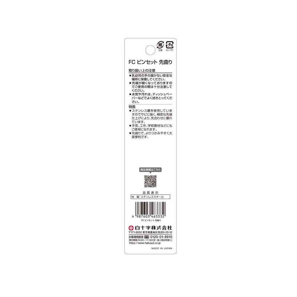 ●乳幼児の手が届かない安全な場所に保管してください。●救急用としてご使用のときは必ず尖端部を消毒してください。●先端を曲げていますので、救急用の他に各種手芸手工用から学童教材、プラモデルの精密作業用として巾広くご使用になれます。