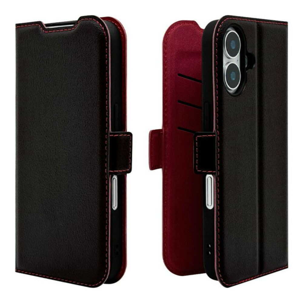 iPhone16、ケース、カバー、手帳型、薄型、耐衝撃吸収、カード入れ、スタンド機能、slim、Fit、サイドマグネット、ブラック×レッド、アイフォン、スマホケース、8081IP461BSMBKR