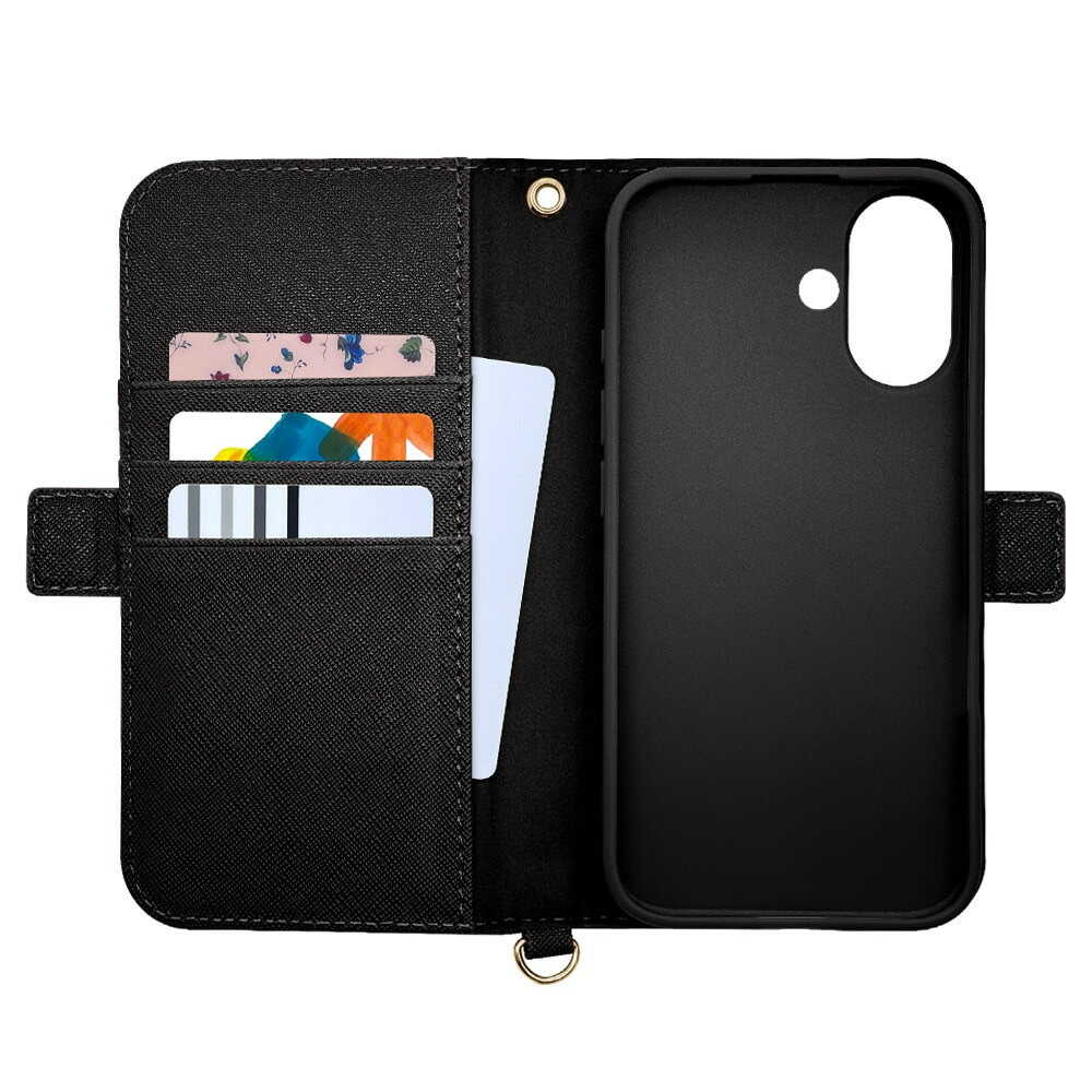 本製品は液晶画面側と背面側の両面を保護できるハンドストラップ付きの手帳型ケースです。 フタの固定は開閉しやすいサイドマグネット式を採用しております。 背面を折り曲げることで、視聴スタンドになります。 フタの内側に大きいポケットが1つ、カードが入るポケットが3つついています。 ※非接触型の交通系ICカードや電子マネーカードを収納することが出来ますが、スマートフォンが干渉し読み取りエラーを起こす場合があります。また複数のカードを収納した場合も正常に読み取れない場合があります。 内側は着脱しやすいTPUケース。 ケースをつけたまま、充電コネクターの接続、タッチパネル操作、各種ボタンの操作が可能です。 ワイヤレス充電及びMagSafeアクセサリには対応しておりません。
