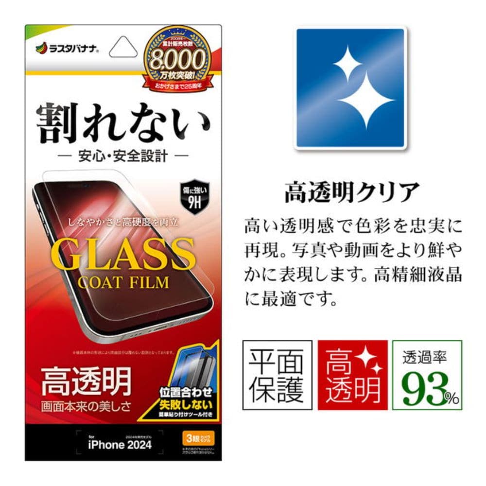 iPhone16Pro、フィルム、Pro、フィルム、平面保護、高光沢、高透明、クリア、ガラスコート、0.34mm、簡単貼り付け、アイフォン、保護フィルム、AP4419IP461P