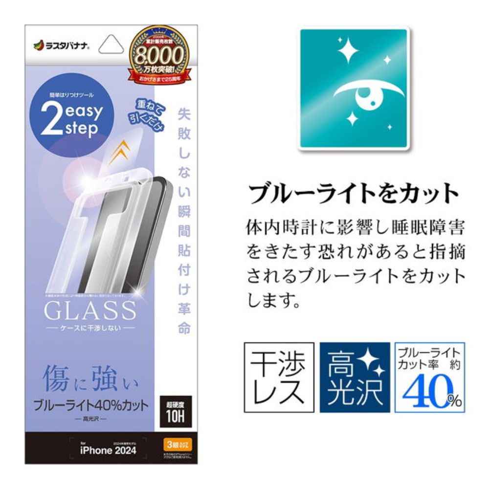iPhone16Pro、ガラスフィルム、Pro、平面保護、ブルーライトカット、高光沢、傷に強い、干渉しない、干渉レス、0.33mm、硬度10H、レボリューションガラス、貼付革命、瞬間貼り、アイフォン、保護フィルム、MTK4532IP461Pナ