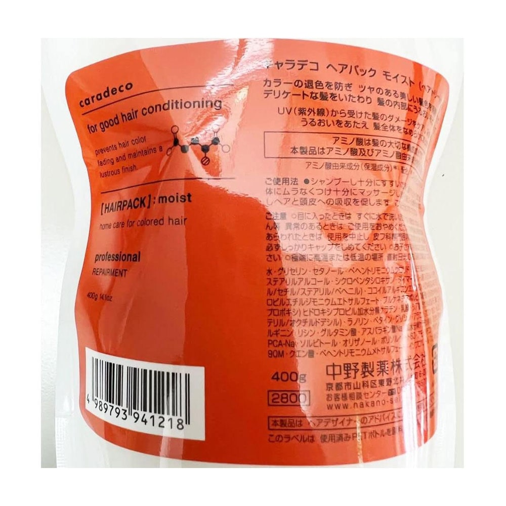 キャラデコヘアパックは紫外線から受けた髪のダメージをケアします。 みずみずしくうるおいをあたえ、髪全体をなめらかにまとめます。 ヘアカラーの色味をより長く楽しみ続ける3つのポイント。 染料流出の比較的少ない界面活性剤の組み合わせで日々の洗髪による染料流出を抑えます。 染料やアミノ酸、水分の流出を防ぎ、ツヤやかでなめらかな毛髪を実現します。 タンパク由来成分でダメージを補修し、コンディションを整え、紫外線や熱によって受けたダメージをケアします。