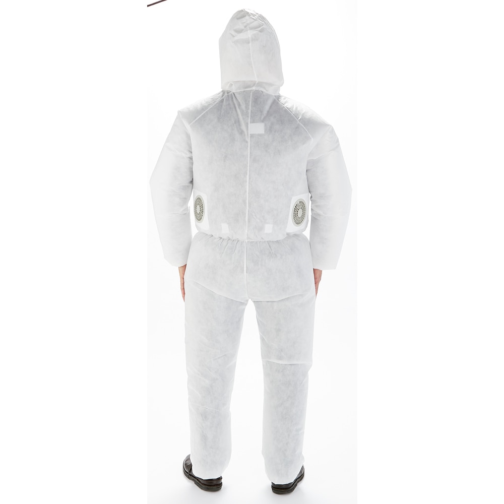 ●空調服[[R下]]のファンが取り付け可能な使い捨て保護服です。●ポリプロピレン(PP)スパンボンド不織布の上にフィルムラミネートを施し、防水性に優れています。●「空調服」は(株)セフト研究所・(株)空調服の商標及び登録商標です。●「空調服」は(株)セフト研究所・(株)空調服のファン付きウェア、その附属品、及びこれらを示すブランドです。●色:ホワイト●サイズ:3L●着丈(cm):182●胸囲(cm):143●肩幅(cm):53●袖丈(cm):67.5●適合身長(cm):170~188●適合胸囲(cm):96~124●ファン取付用の穴あき仕様●袖口・裾口・背ウエストゴム入り 質量214g