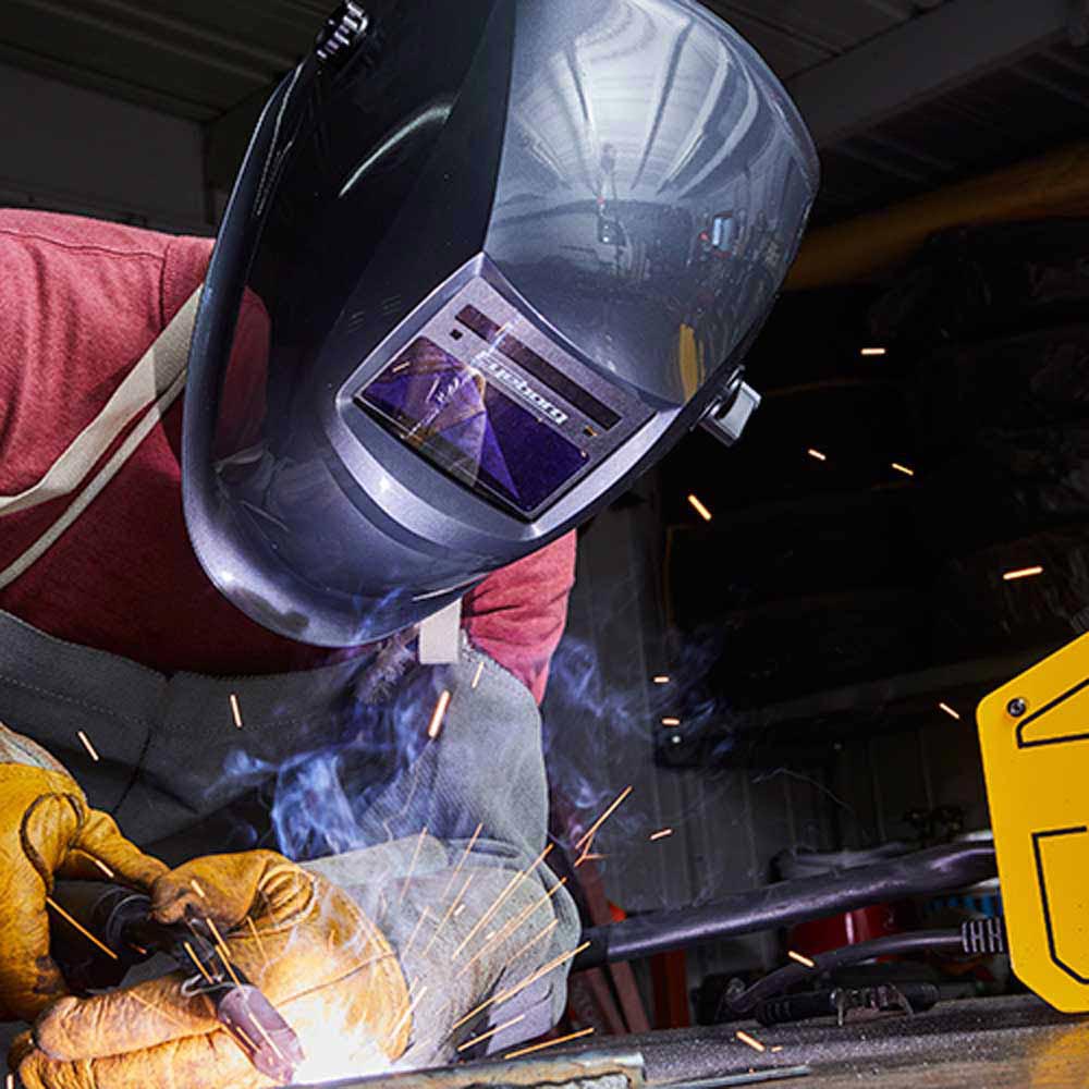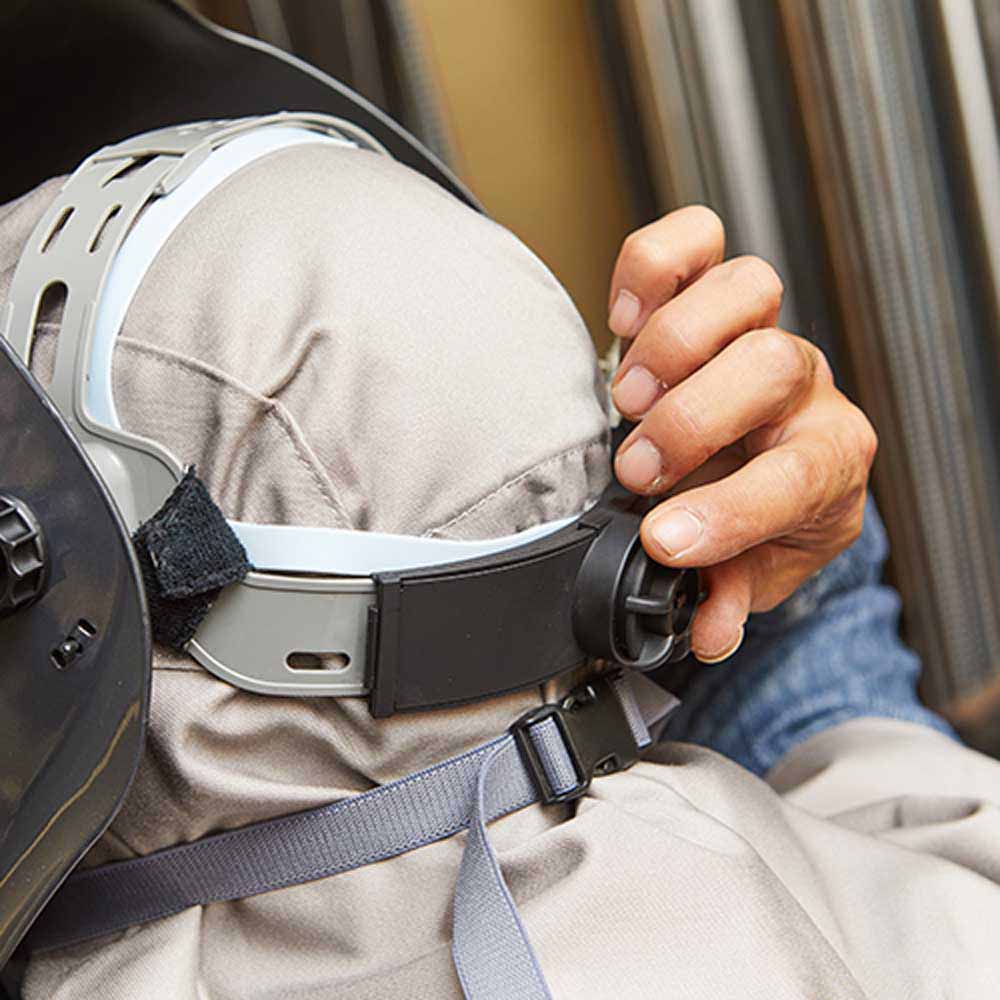 液晶式自動遮光溶接面、クリアな視界の液晶ブルーフィルターを採用しました。 TIG/MIG/MAG/手棒溶接等、各種電気溶接作業時の閃光から目を保護。 長時間の溶接使用にも作業者が感じる負担を軽減される液晶面です。 ソーラー電池とリチウム電池のハイブリッド電源採用、98x44mmのワイドな視界です。 ●遮光度:No.9~No.13。 ●遮光速度:1/25000秒。 ●センサー数:2個。 ●視野の広さ:98×44mm。 ●電源:単4電池×2本+ソーラー電池。 ●本体質量:528g。 ●感度調整・戻り速度調整ダイヤル:無段階調整。 ●グラインダーモード・バッテリーアラーム。