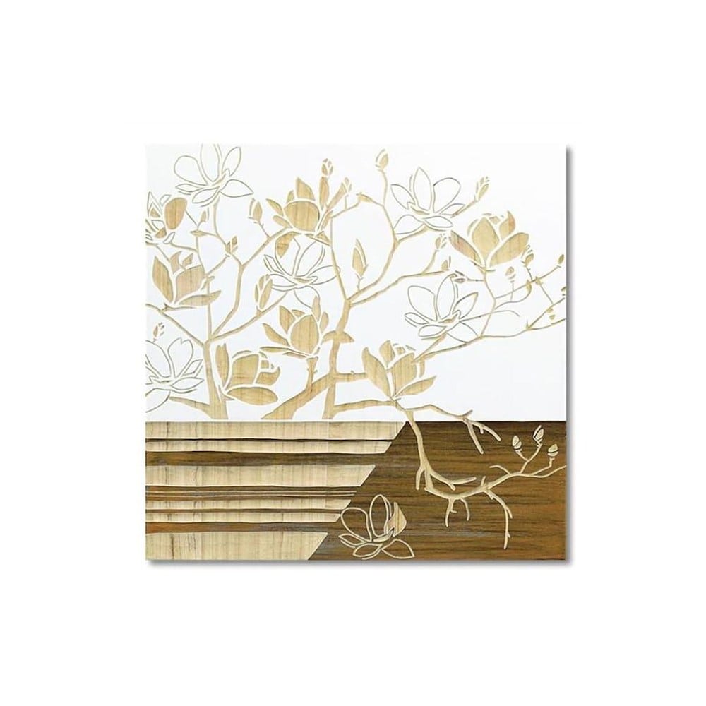 ネーチャーなモダンアート 天然の木にペイントを施し、熟練した職人がリーフや花、木等の柄を様々なサイズの彫刻刀を使って、1枚1枚彫っています。様々な木目が現れネーチャーなモダンアートです。