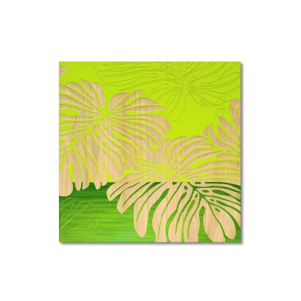 ネーチャーなモダンアート 天然の木にペイントを施し、熟練した職人がリーフや花、木等の柄を様々なサイズの彫刻刀を使って、1枚1枚彫っています。様々な木目が現れネーチャーなモダンアートです。