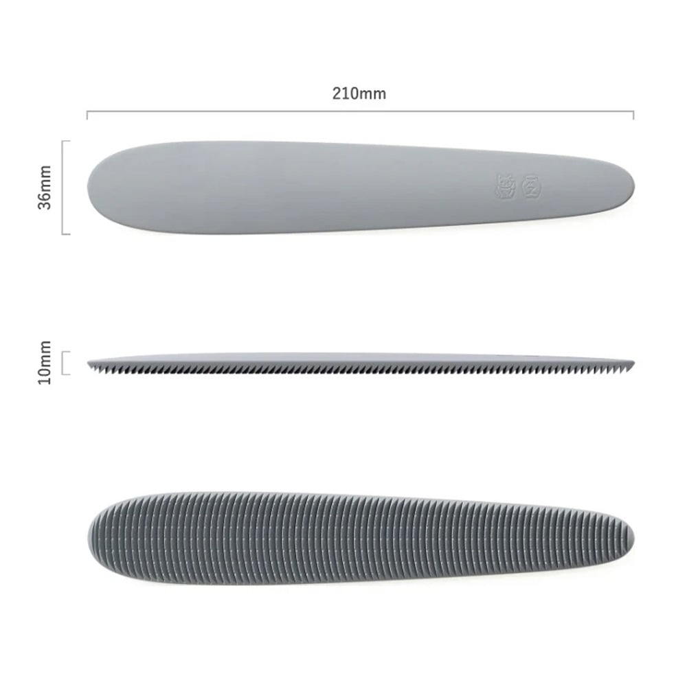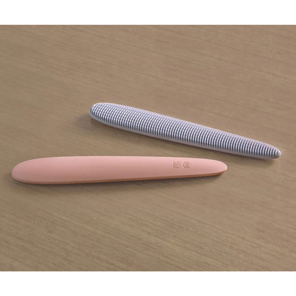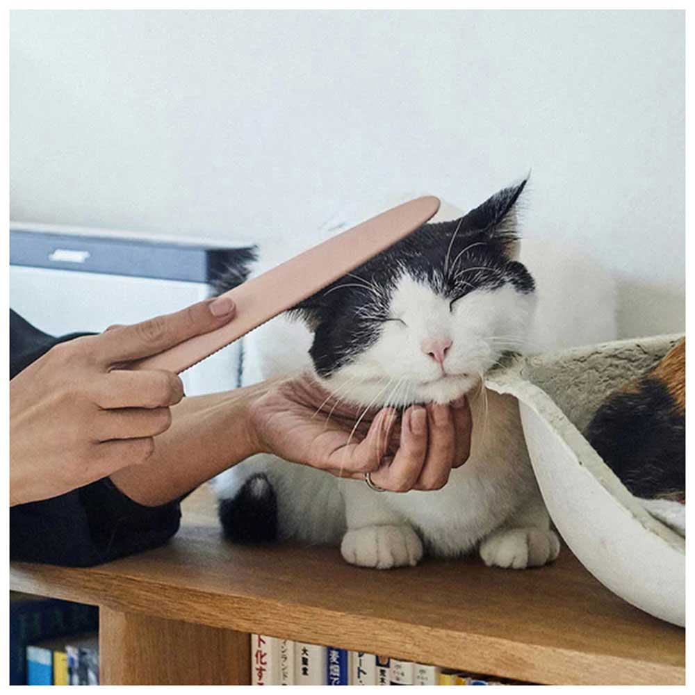 ねこがうっとりとろける不思議な道具です。 猫と人間のコミュニケーションスティック。 ねこの舌のようなザラザラとした細かなやすり面が気持ち良さのひみつです。 全面に細やかな櫛歯が入っているので、どの方向からでも撫でることができます。 使用後は水で丸洗いでき、清潔に保てます。 左右で太さに違いがあり、太い方は広い面(背中やお腹・脇等)に、細い方はへこんだ部分や狭い部分(頭・あご・首周り等)に適しています。 ●本体カラー:グレイッシュピンク。 ●サイズ:210×36×10mm。