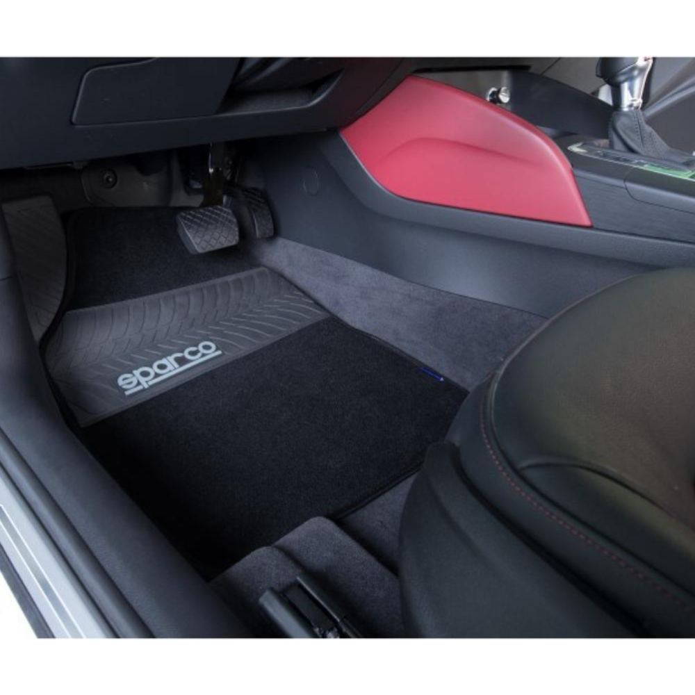 イタリアのモータースポーツ用品ブランド「スパルコ」のDNAを引き継ぐ「sparcoCORSA」のカーアクセサリー。4枚セットなので、運転席、助手席、後部座席左右のフロアの計4か所に置くことができる。右ハンドル車・左ハンドル車、どちらにも対応。