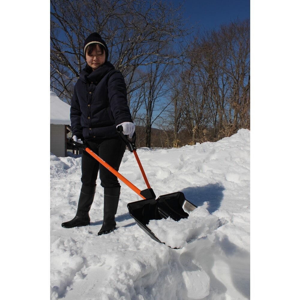 ●かがまないから、雪かき楽々!●腰がラクで、重い雪も軽々ポーン!●弾力サブハンドル付き雪かきスコップ●辛い雪かき作業をラクにしてくれる、と巷で話題の「スノースコップ」●補助ハンドルによって、かがまずに立ったままの姿勢で雪かきが可能●しかもテコの原理で、かいた雪をそのままポーンと軽々放り投げられます!●だから腰も膝も楽だし、雪の重さも気になりにくいんです●ツラくて億劫だった雪かきが、スピーディに時短も出来ます●従来型のスコップと比べて、腰周辺の筋活動量が最大75%減少!(第三者機関調べ)●全長(mm):1270●色:オレンジ ブラック●サイズ(約):全長127×幅45cm、皿:H35×D10cm 補助ハンドル長さ43cm●重さ(約):1.67kg●材質:PP、炭素鋼、アルミ合金●一部 組立式 質量1.67kg