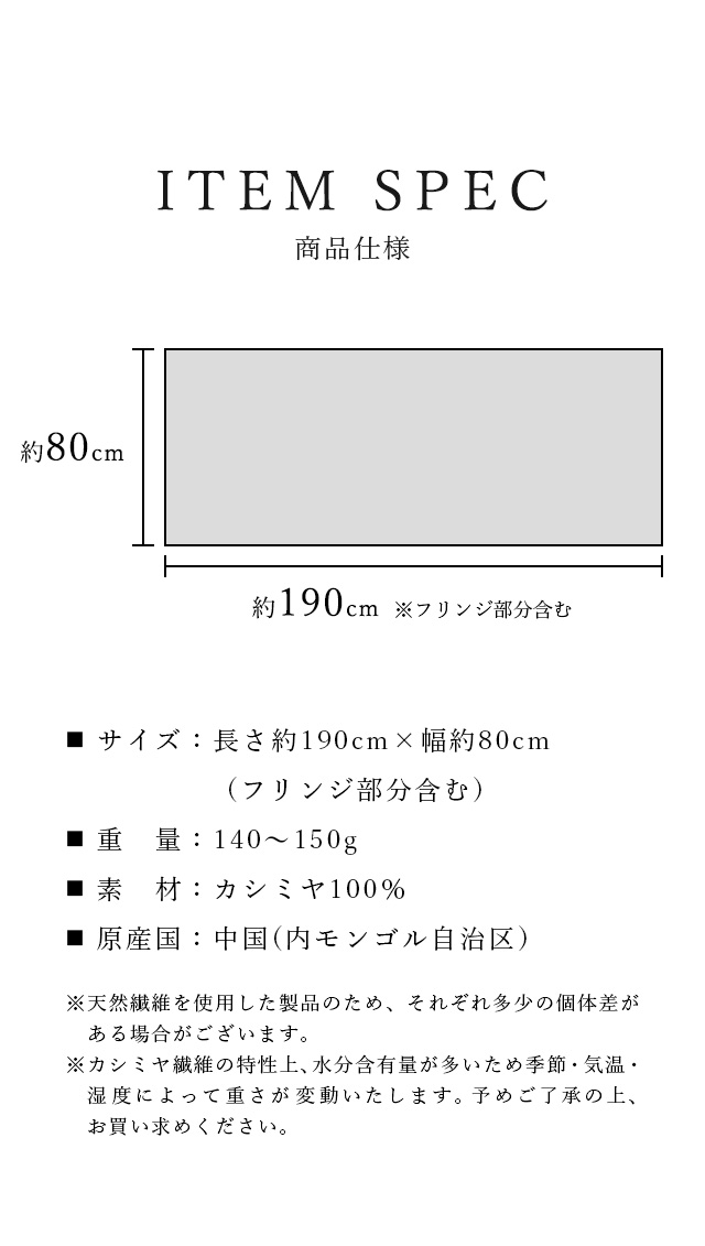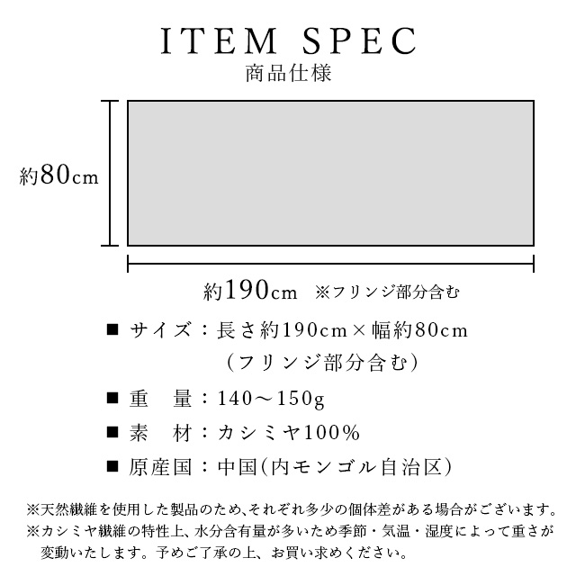 縦約190cm × 幅約80cm(フリンジ 部分含む)